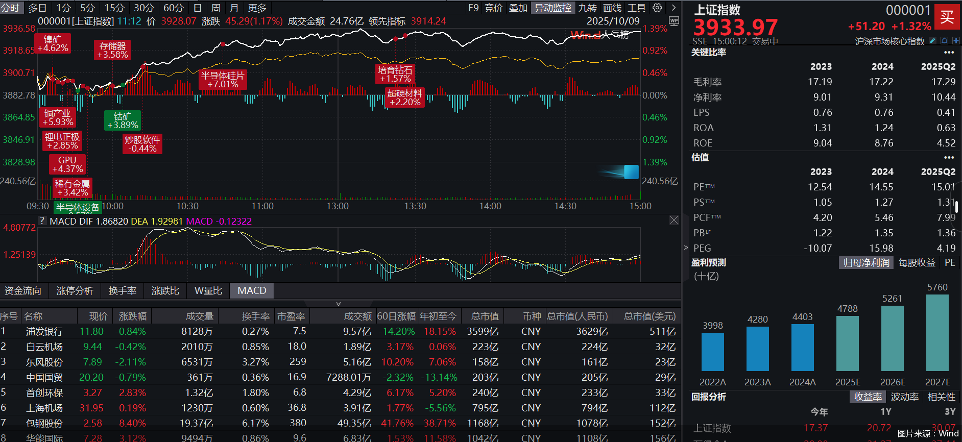 展望后市,高政扬解读称,节后首个交易日沪指突破3900点、续创近十年新高,且成交额较节前显著放量,表明市场资金做多情绪浓厚,投资者参与积极性较高,为后续上行奠定基础。展望四季度,我国经济预计维持稳步复苏,基本面有望逐步改善,政策层面依然保持宏观流动性宽松,为市场提供充足流动性支撑;叠加后续增量政策落地预期,A股有望延续震荡上行趋势。