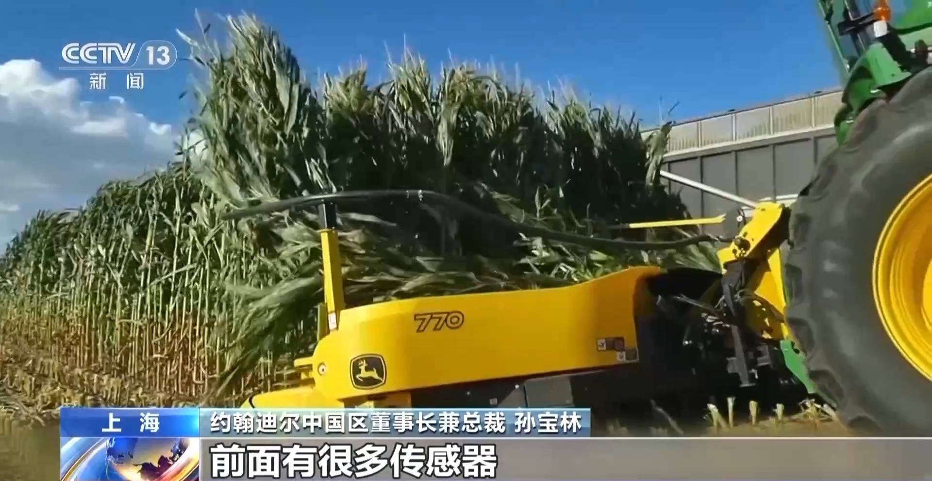 rrrrr约翰迪尔中国区董事长兼总裁 孙宝林:我们现在农机的发展走向智能智慧化,一个操作手柄就可以实现所有机械操作,并且在收割的过程中,会自动检测饲料的各种成分,然后上传到牧场的平台。